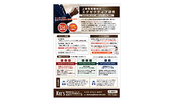 「エグゼクティブ上級管理者向け研修パッケージ」は、“話し方のプロ”であるアナウンサー講師から、エグゼクティブにふさわしい話し方・コミュニケーションの総合的なスキルがまるごと学べる研修パッケージです。この資料では、エグゼクティブ20,000人の受講実績を誇るKEE'Sのエグゼクティブ向け研修カリキュラムや、受講者の声を1枚にまとめておりますので、お時間の無い方でもお手軽にご確認いただけます。