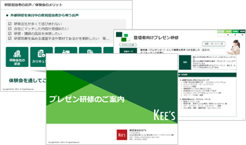 KEE'Sの「プレゼンテーション研修」は、“話し方のプロ”であるアナウンサー講師から、課題・階層に合わせた本格的なプレゼンテーションスキルが学べる実践型の研修です。この資料では、6時間で変化が実感できる「プレゼンテーション研修」のカリキュラムや効果、導入事例などをわかりやすくご紹介しております。