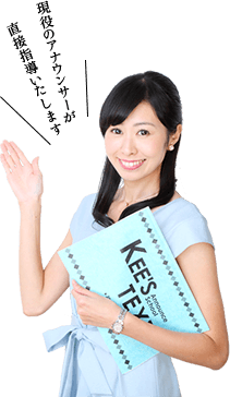 KEE’S講師はすべて放送局出身のアナウンサー。講師希望の中から採用するのはわずか3割ほどで、スキルだけでなく、教えることへの熱意や人格を重視しています。厳しい採用基準の中選定され、研修を積んだアナウンサー講師だけを派遣致します。そのため、多くのお客様が担当講師をリピートされるほど、ご満足いただいております。